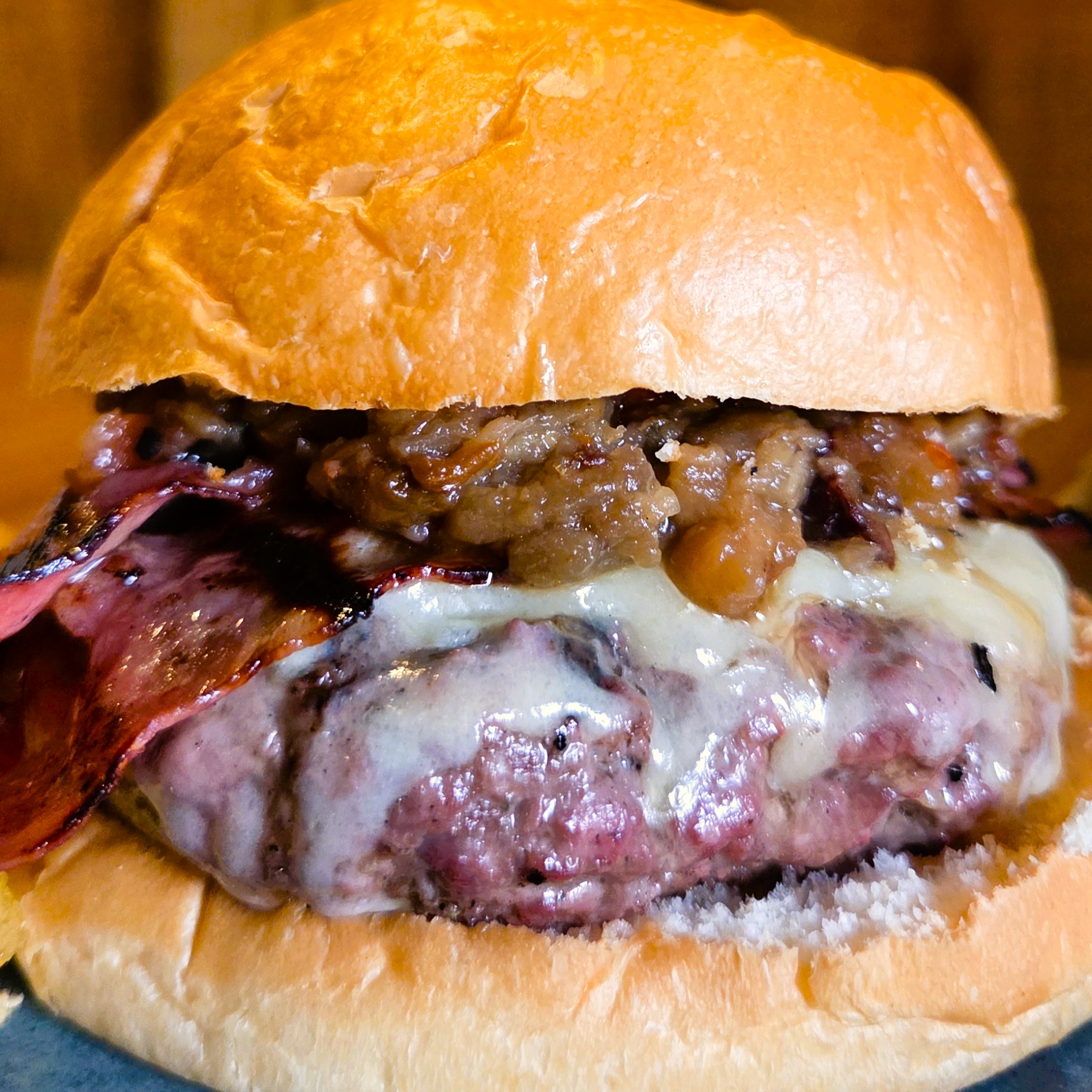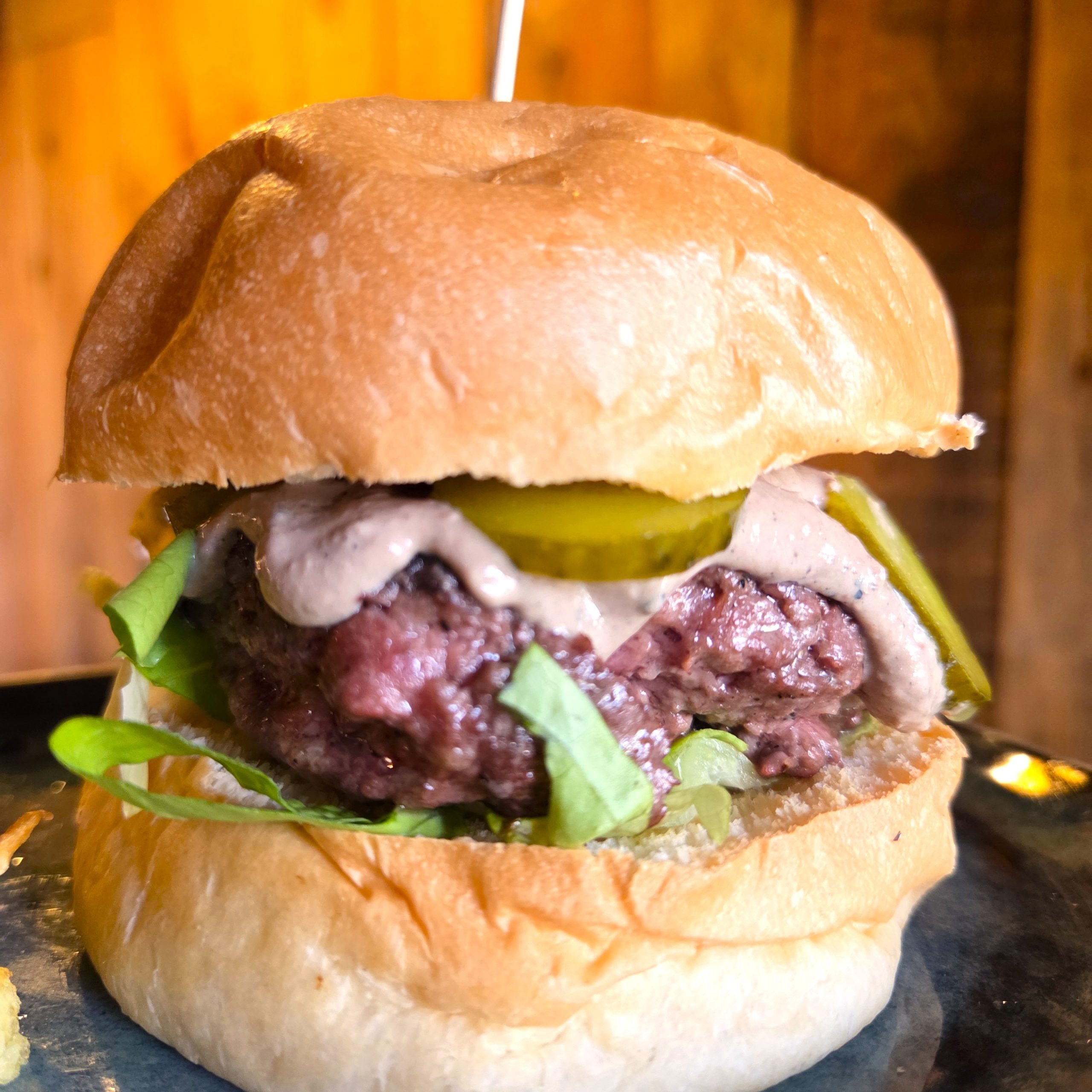 octubre: berenjena a la brasa y ciruela pasa, bacon y chedar envejecido 9 meses ¡A tope con esta hamburguesa! octubre:Hamburguesa con pate casero de higaditos de pollo, lechuga y pepinillos sabrosa y equilibrada ¡¡Para chuparse los dedos!! Queso azul y mermelada de naranja ¿Cuál será la hamburguesa fuera de carta del mes? ¡¡seguro que estará para chuparse los dedos!! Haz tu reserva Pide a domicilio